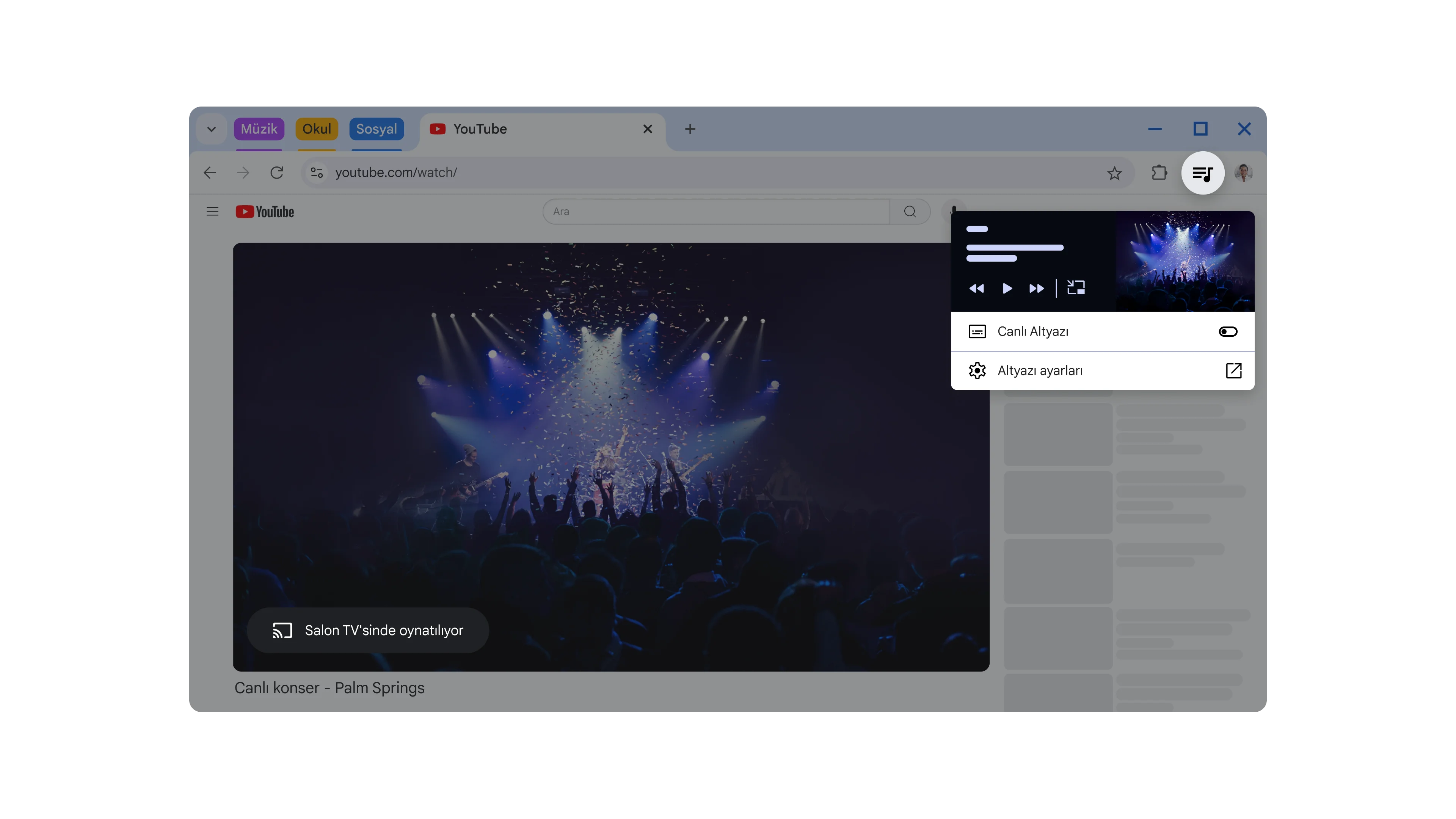 Google Cast ve Medya Kontrolleriİstediğiniz gibi izleyinChrome sayesinde bilgisayarınızdaki veya telefonunuzdaki içeriği Google Cast özellikli TV'nizde yayınlayabilirsiniz. Ekranınızın tamamını veya belli bir sekmeyi aktarmayı seçebilirsiniz. Yayınlama hakkında daha fazla